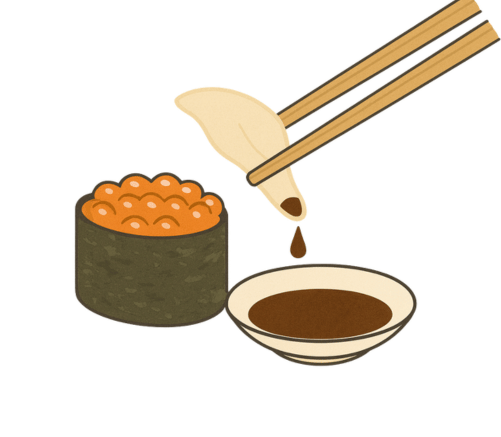 いくらやウニなどが乗った軍艦巻きは、傾けると上の具材がこぼれやすいため、醤油のつけ方に少し工夫が求められます。