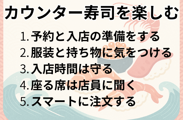実は、いくつかの基本的なポイントを押さえるだけで、誰でも落ち着いてカウンターの寿司を楽しめるようになるんです!