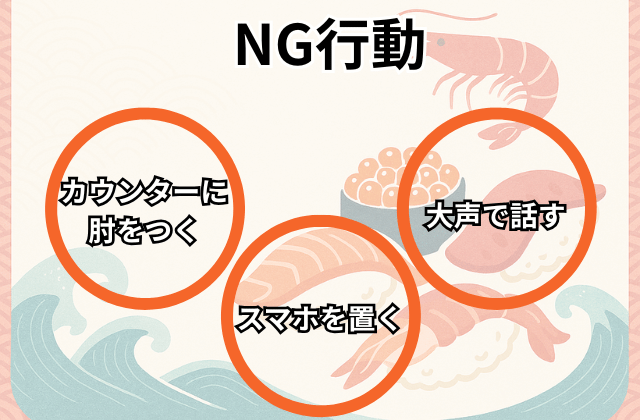 寿司屋のカウンターはライブ感あふれる劇場のような空間ですが、決して騒がしくしてよい場所ではありません。