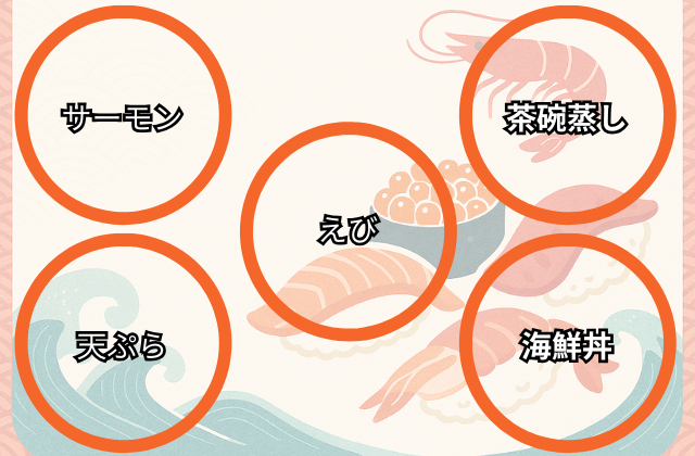 回転寿司の魅力は、まぐろだけではありません。家族みんなが楽しめる、女性やお子様にも人気のメニューは以下のとおりです。