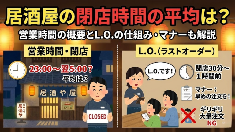 居酒屋の閉店時間の平均は?営業時間の概要とL.O.の仕組み・マナーも解説