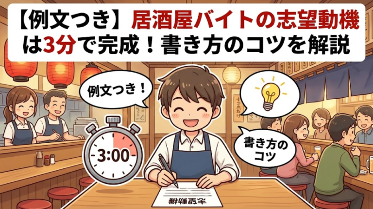 【例文つき】居酒屋バイトの志望動機は3分で完成!書き方のコツを解説