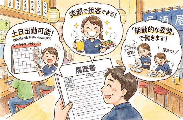 同じ居酒屋バイトでも、ホールとキッチンでは求められる資質が大きく異なるため、希望職種に合わせたアピールが必須です。
