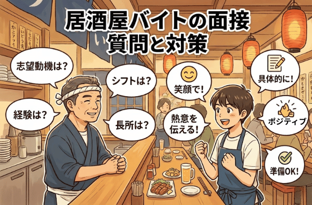 居酒屋バイトの面接では、聞かれる質問にある程度似通った傾向があり、事前の準備で焦らず対応できます。