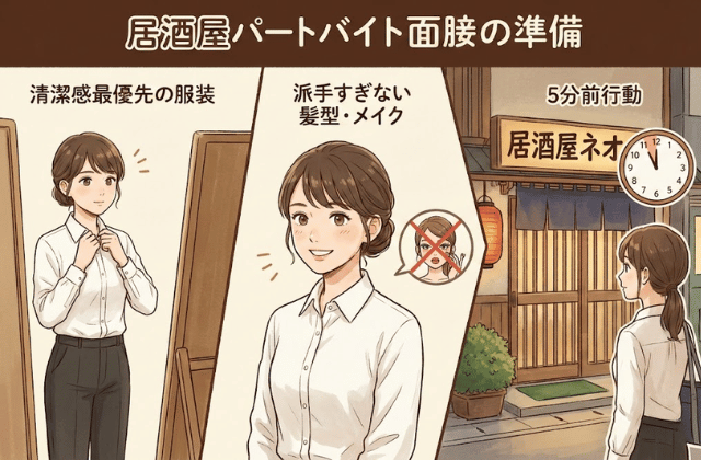 居酒屋バイトの面接にスーツを着ていく必要はありませんが、ラフすぎる服装もNG。何よりも「清潔感」が最重要です。