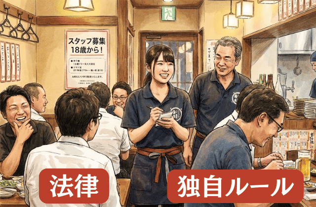 居酒屋で働くための年齢基準は、法律と店舗の方針という2つの側面から確認する必要があります。