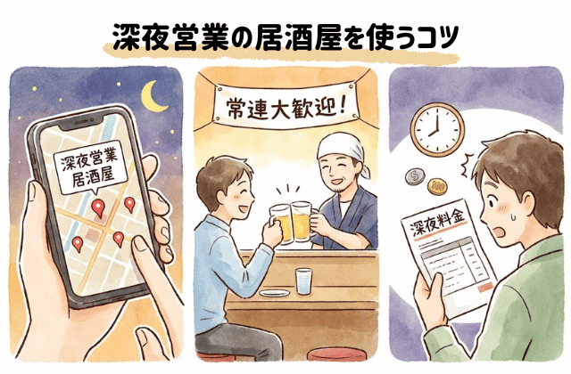深夜帯の居酒屋利用には、昼間とは違った探し方のコツや注意点があります。スムーズに入店し、快適に過ごすためのポイントは以下の3つです。