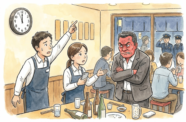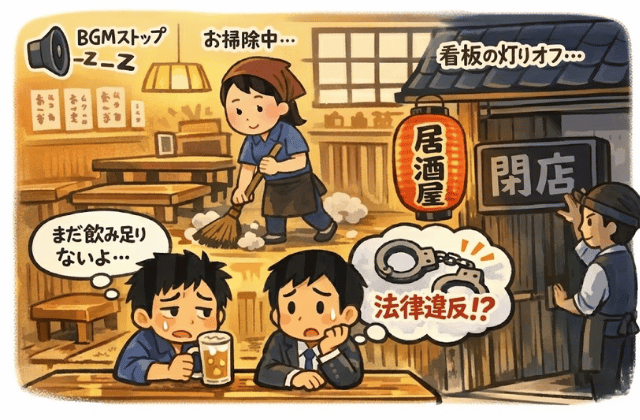 「まだ飲み足りない」という客側の都合だけで粘ったとしても、営業時間を過ぎていれば正当性は店側にあります。