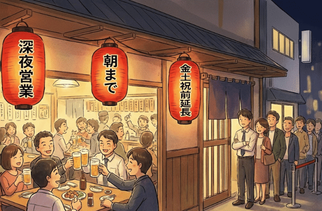 本記事では、居酒屋の平均的な閉店時間やラストオーダーの仕組みに加え、深夜営業店の探し方やスマートな解散のマナーまで詳しく解説します。