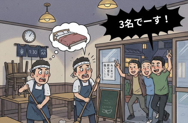 店側からすれば、片付けを始めているタイミングで新たな客が来ると、作業が振り出しに戻り、残業が確定してしまうためです。