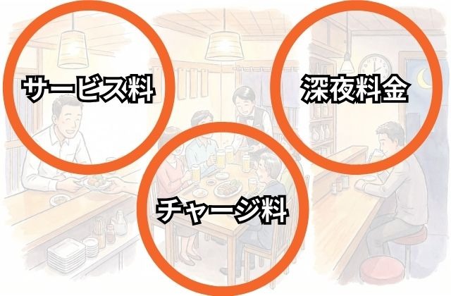 | サービス料 | 接客や奉仕に対する対価 | ホテル、高級レストラン |