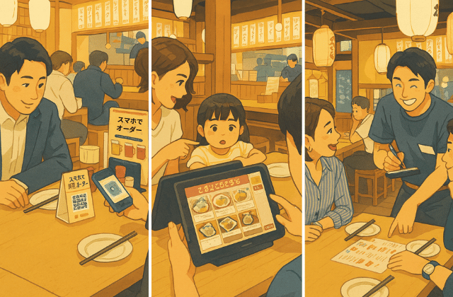 また、入店時にはそのお店のオーダー方法(QRコード、タッチパネル、口頭など)を確認しておきましょう。