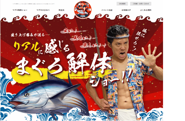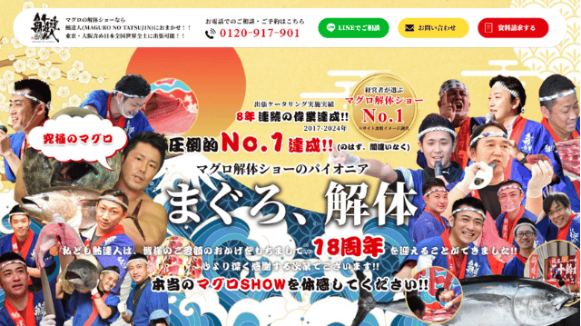 『鮪達人』は、全国へ出張可能なまぐろ解体ショー専門業者です。テレビや雑誌など、数多くのメディアへの出演歴を持っています。