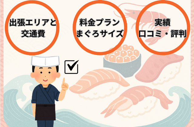 また、たとえ出張可能な地域であっても業者の拠点とイベント会場が遠い場合、まぐろの運搬費や交通費、職人の宿泊費など追加費用が発生する恐れもあります。