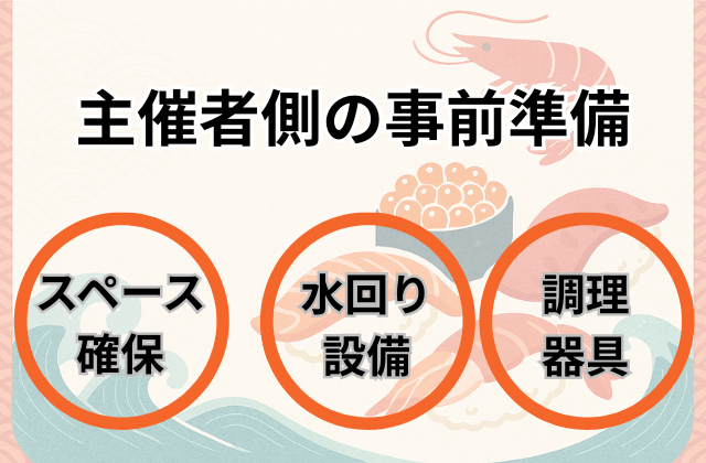 出張まぐろ解体ショーを成功させるには、主催者側の準備も重要です。業者に依頼する前に、以下3つのポイントを確認しましょう。