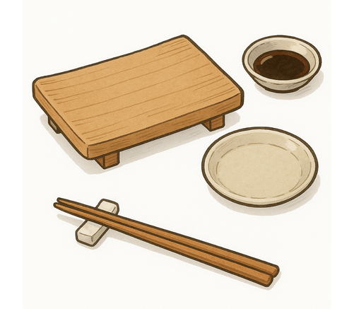 主催者側で確認すべきは、解体後のまぐろを提供する際に使用する皿・箸・醤油・小皿などの備品です。