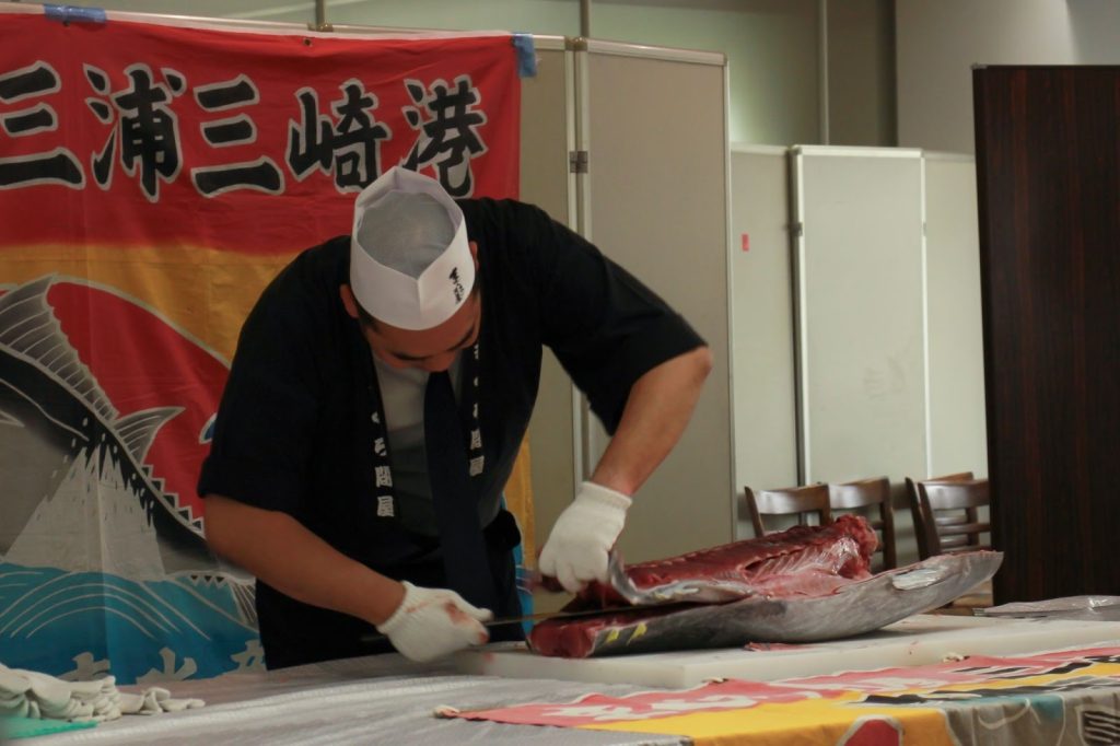 『まぐろ解体師 太郎』は、東京で仕入れた新鮮なまぐろを使い、全国でまぐろの解体ショーを行なっています。