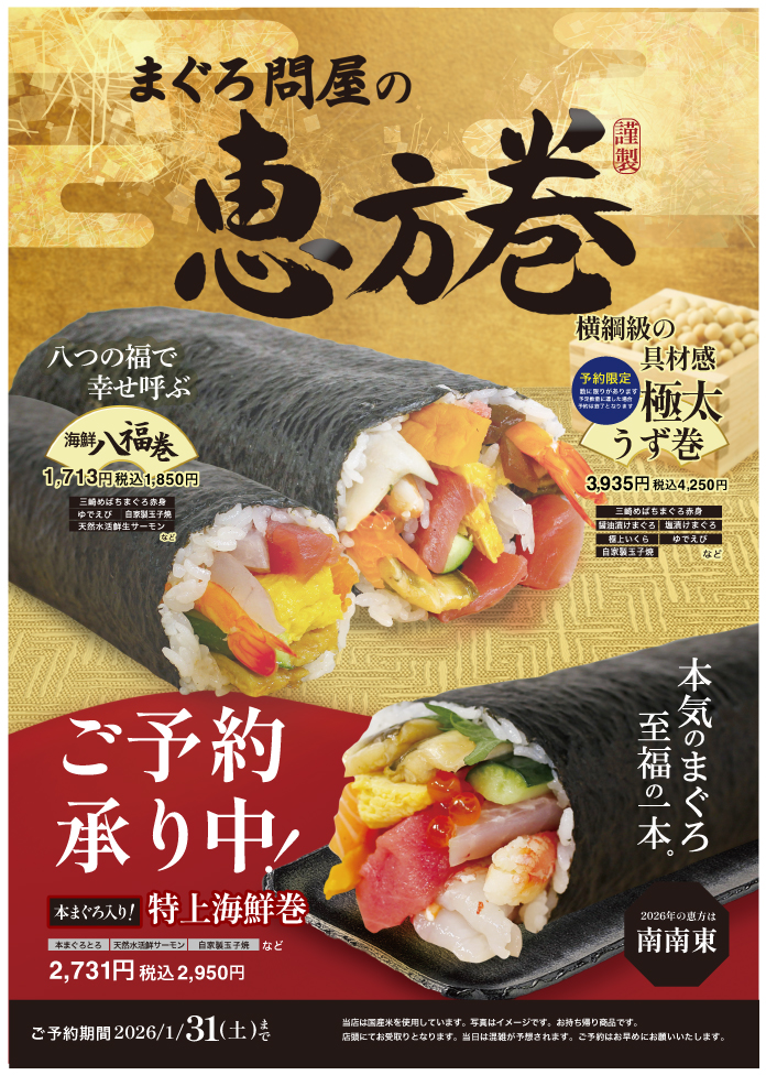 2026年 恵方巻|予約受付開始!まぐろ問屋の御祈祷恵方巻で節分を楽しもう