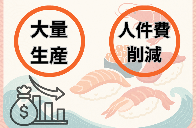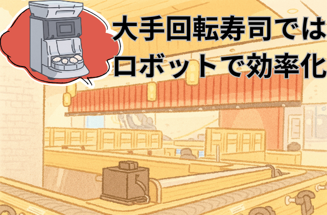 たとえば業界大手のスシローでは、生産効率をあげるために寿司ロボットを導入。お客さまを待たせることなく、大量の寿司を低価格で提供するビジネスモデルを確立しました。