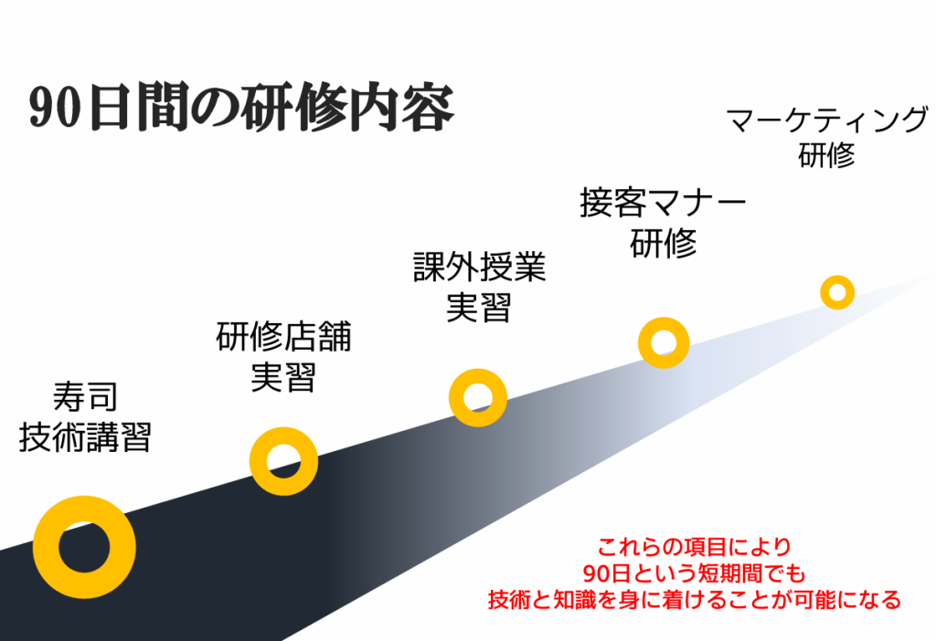 寿司職人ロボットの導入も人手不足を解消する策の一つですが、ネオ・エモーションが提供する研修制度『90日寿司職人育成プログラム』もおすすめです。