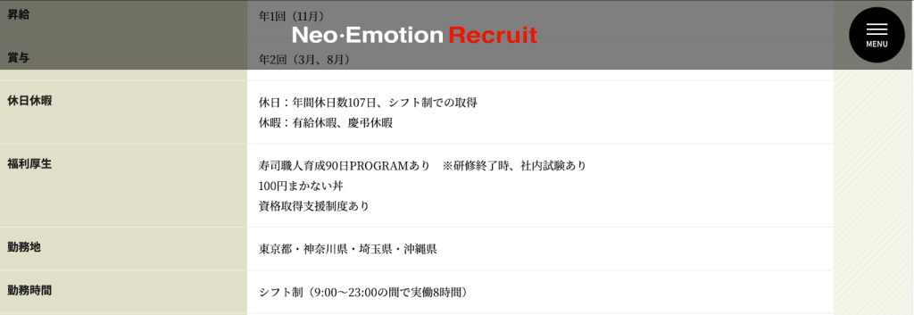 ネオ・エモーションでは、未経験からでも最短90日で寿司を握れるようになる独自の育成制度を導入。