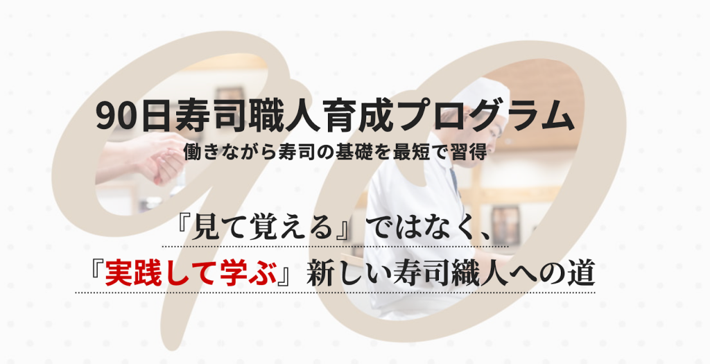 たとえば、「ネオ・エモーション」が提供する『90日プログラム』では、未経験からでもわずか3ヶ月で寿司を握れるようになる制度があります。
