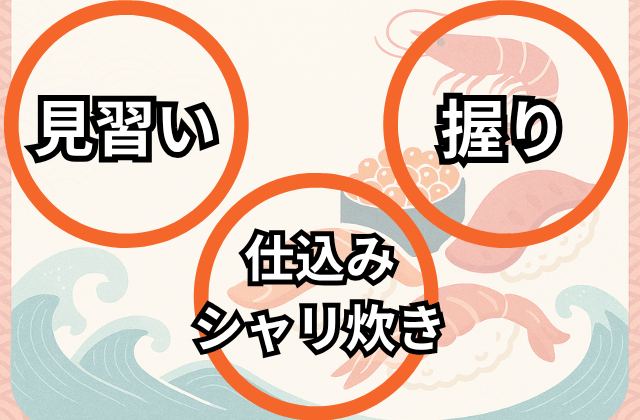 寿司職人のキャリアは、多くの場合見習い・下積み期間からはじまります。