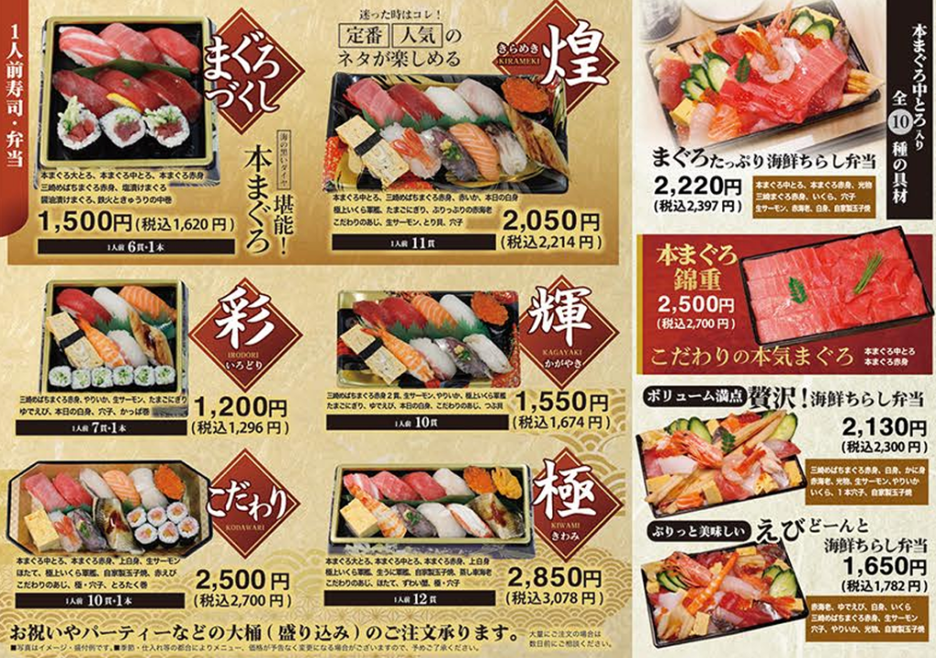 また、まぐろ問屋 めぐみ水産では、持ち帰りメニューも充実しています。