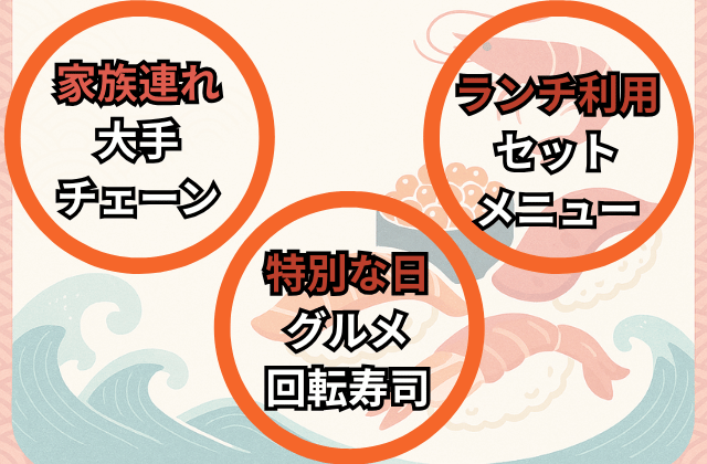 戸田市で回転寿司店を選ぶ際は、利用シーンにあわせてお店を使いわけるのがおすすめです。選ぶ際のポイントをまとめました。