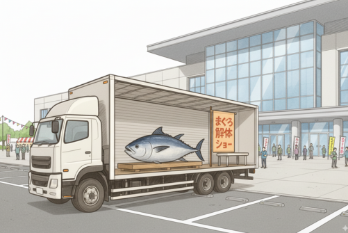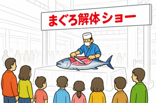 巨大なまぐろが会場に運び込まれる登場シーンは、期待感を高める絶好のチャンスです。ショーの成功は、最初の「つかみ」で決まると言っても過言ではありません。