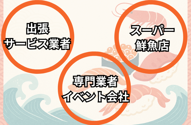 費用を抑えたい場合や地域の小さなイベントでは、出張サービスに対応しているスーパーや鮮魚店に依頼するのもおすすめです。