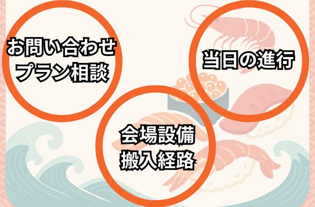 設営・司会・後片付けなど、どこまで対応してもらえるのか事前にしっかり確認しましょう。
