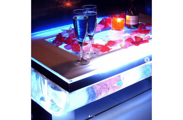 店内にはデジタルアクアリウムが設置されており、ゆらめく光の演出が非日常感を盛り上げます。