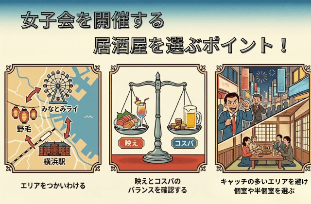 横浜での女子会を成功させるためには、おしゃれさやコスパだけでなく、エリア選びや事前のリサーチが重要です。
