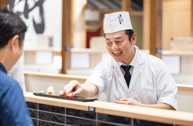 一般的なチェーンの回転寿司とは異なり、職人が目の前で握るライブ感とネタの身厚さ、とろけるような脂の乗りは、まさに専門店クオリティ。