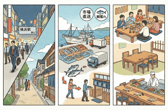 そこで本記事では、横浜駅周辺で「鮮度」「産地」「空間」にこだわった、自信を持って人を連れて行ける居酒屋7選と、失敗しない選び方を解説します。
