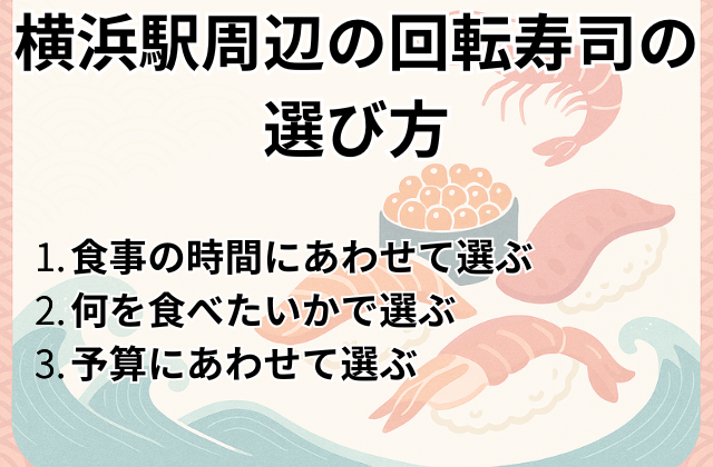 横浜駅周辺の回転寿司を利用する際に、多くの人が気になるポイントをまとめました。